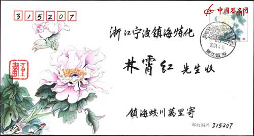 镇海蛟川万里画牡丹手绘实寄封欣赏
