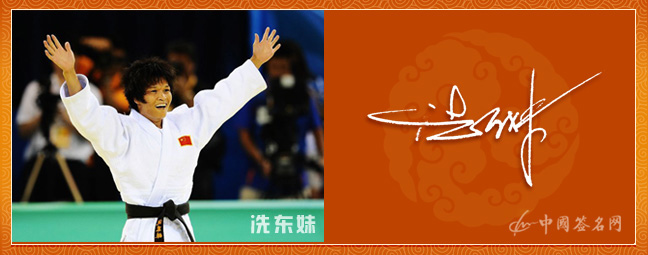北京奥运会女子柔道冠军—冼东妹签名作品欣赏