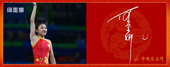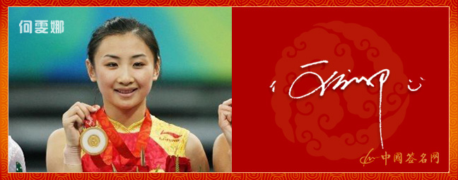 北京奥运会蹦床冠军—何雯娜签名作品欣赏