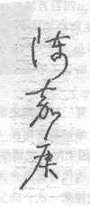 现在我们来看看陈嘉庚83岁时的签名,钢笔坚签,笔法折转相济,很丰富也很清楚,运笔比较从容;字的结构修长,草法正确,风格严整、精细、自然。